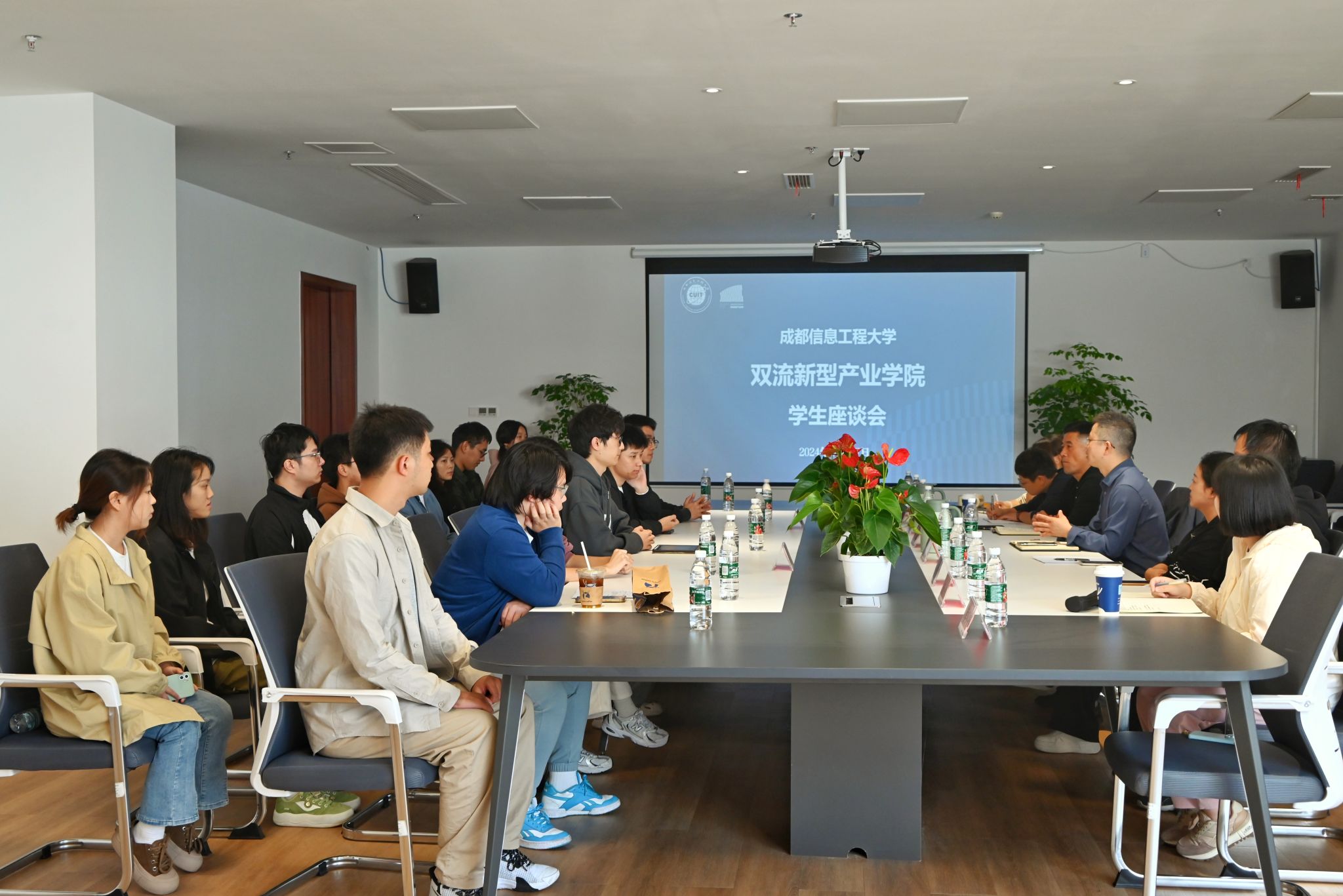 【本网讯】10月17日下午,双流新型产业学院召开了芯谷校区学生座谈会,双流新型产业学院管委会主任陈智勇、通信工程学院(微电子学院)、网络空间安全学院、光电工程学院、人工智能学院(区块链产业学院)专职管理老师、辅导员及管委会工作人员,15名学生代表、芯谷校区研究生会学生干部参加了座谈。