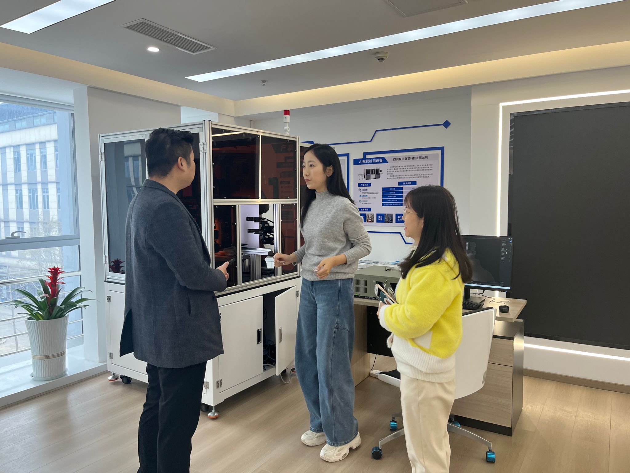 【本网讯】3月18日上午,学校双流新型产业学院管委会开放合作部部长杨克明一行赴四川星问数智科技有限公司(以下简称“星问数智”)参观交流,双方就人工智能技术研发、数字产业人才培养及科技成果转化等议题展开深入探讨。