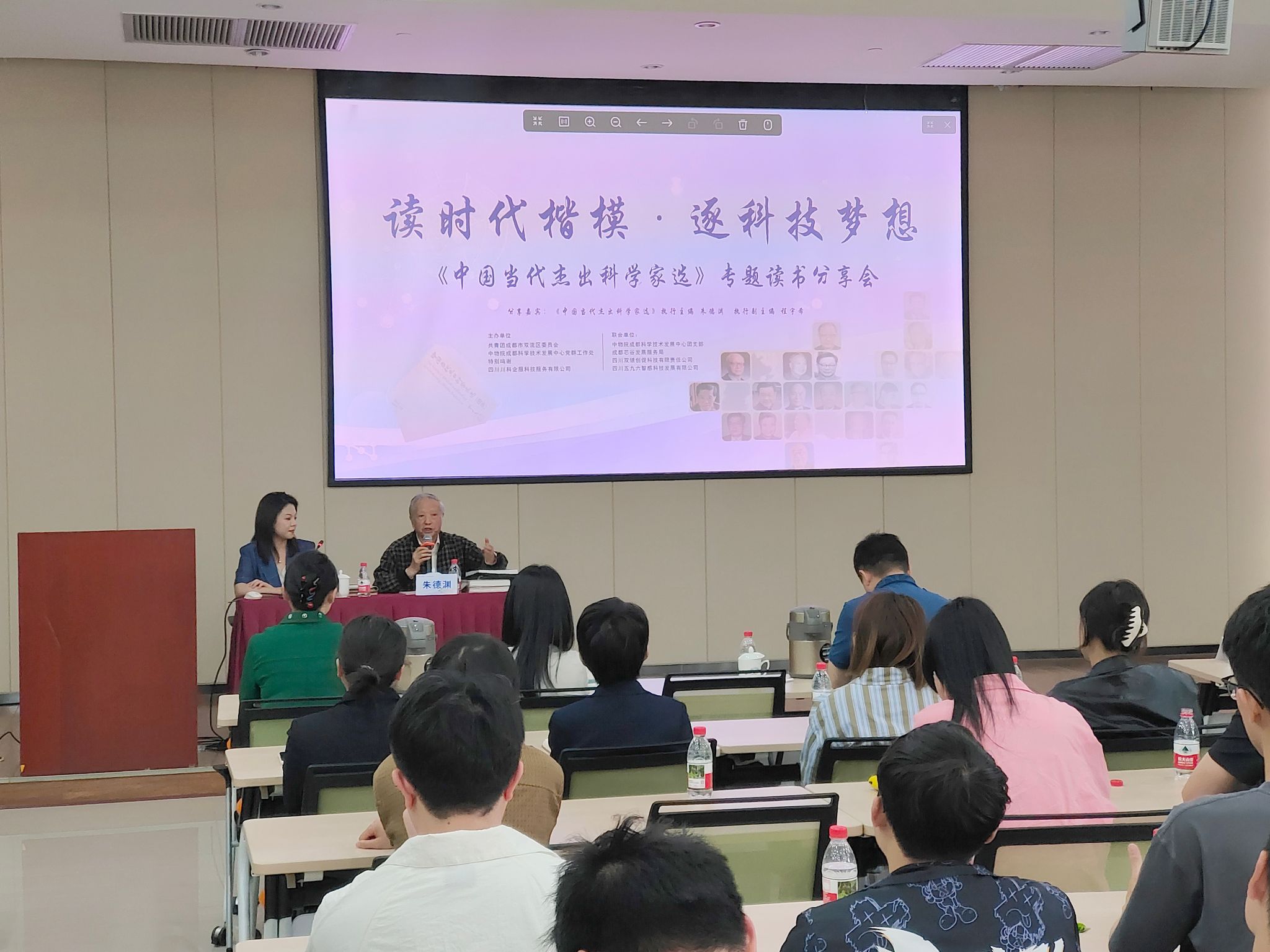 【本网讯】4月28日,bw西汉姆联双流新型产业学院30名学生齐聚银河596科技报告厅,参加了一场意义非凡的《中国当代杰出科学家选》专题读书分享会。本次分享会以“读时代楷模,铸科技梦想”为主题,主讲人为资深媒体人、《中国当代杰出科学家选》执行主编、88岁高龄的朱德渊老先生,带领同学们走进当代杰出科学家的世界,汲取奋进力量。朱老先生把与90多位当代科学家访谈的故事与同学们面对面分享。同学们深刻感受到科学家们在追求真理道路上的执着与坚守,以及对国家和民族的深厚情怀。